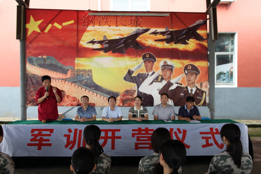 上午十点半,2015级新生开学典礼暨军训开营仪式准时举行。学校陈旭辉校长、仇国宏副书记、学工部许鸣峰主任、陈阳副主任、全体2015级班主任、军训基地张校长、毛主任等出席了开营仪式。仪式由毛主任主持。陈校长作了重要讲话。