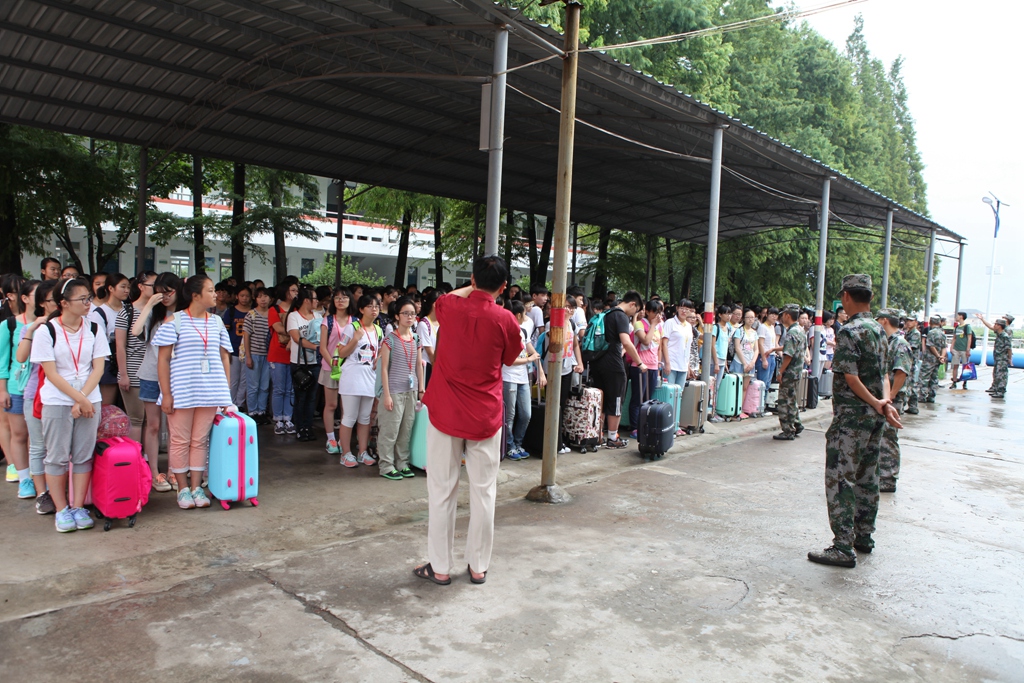 9月5日上午八点左右,我校江宁校区一辆辆绿色的大巴车在校园里形成了一道亮丽的风景线。2015级的560余名新生在班主任老师的带领和学生工作部的统一指挥下有序上车,准备前往位于句容的南京市鼓楼区青少年社会实践基地。在那里,同学们将进行为期一周的军训。