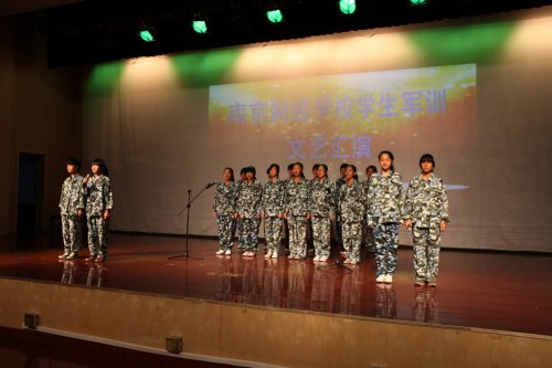 晚7点,学校师生相聚在军训基地礼堂举行了一场精彩纷呈的军训文艺晚会。晚会上,同学们通过一个个动人的歌曲、一支支优美的舞蹈,展现出青春活泼、多才多艺的一面。其中,信息系51301班表演的大合唱《地道战》展现出了团结的力量,金融系51304班的朗诵《你好,中国军人》用铿锵有力的声音赞美了军人的伟大,而会计系51311班唐文康同学带来的神奇魔术《报纸喝水》更将晚会推向了高潮。此情此景,教官们也按捺不住激动的心情,用精彩的拳术表演赢得了同学们阵阵的喝彩声。最后,在热烈的欢呼声中,我校2013级新生军训圆满结束。相信军训的历练,将为2013级的同学们顺利展开我校的学习和生活做好完美的铺垫。