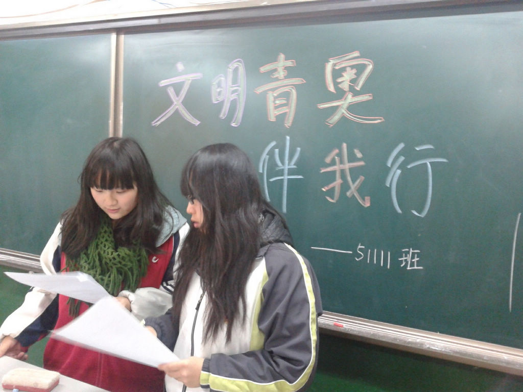 2012年12月10日下午,我校51111班开展了一堂“文明青奥伴我行”主题班会。主题班会集知识竞答、话题讨论,视频观看等方式,形式多样、内容丰富,让同学们对青奥有了更直观生动的了解。