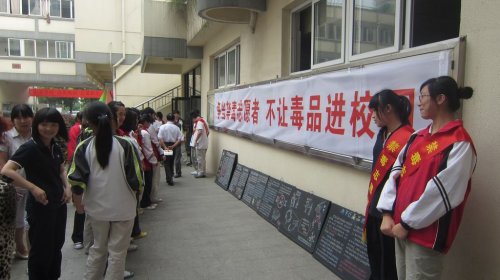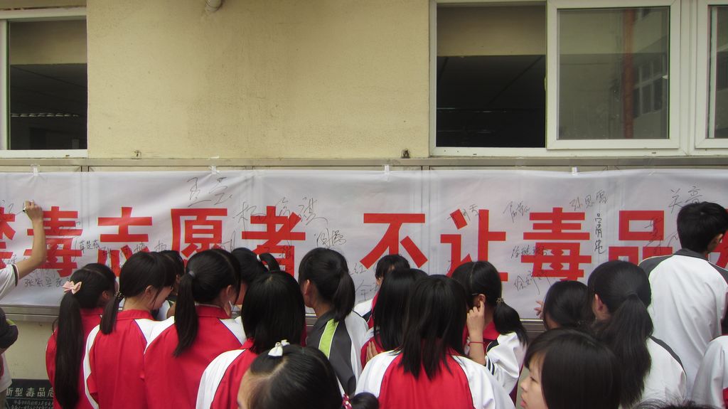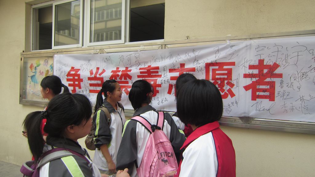 周主任结合自己的工作经历,通过一个个真实的故事,告诉同学们不要因一时的好奇误入歧途,悔恨终身。此外,夫子庙街道戒毒办还带来了禁毒宣传小黑板。课间,不少同学前往观看和了解毒品知识,并在“争当禁毒志愿者,不让毒品进校园”的横幅上签名。