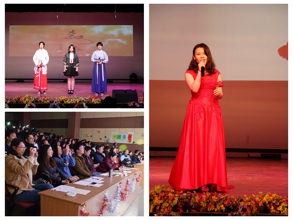 12月7日下午,江宁校区的决赛正式拉开帷幕。首先登场的1605班张嘉城倾情演唱了一首《当爱已成往事》,瞬间勾起了同学们对张国荣的怀念之情。接着,来自1701班的吴添慈则用标准的日语演绎《灌篮高手》的主题曲《好想大声说爱你》,这首耳熟能详的热血之歌激发了同学们的童年记忆。1602班的杨宇轩和双胞胎兄弟朱华健、朱华康用默契的配合,完美演唱了陈奕迅的《红玫瑰》。最终,来自1607班的唐佳敏和方世英以一首轻松活泼的《我在人民广场吃炸鸡》力拔头筹,取得本次比赛预赛和决赛的双料冠军。而1612班王丹蕙的《春风吹》仅以1.24分之差屈居第二。1705班的秦子怡以一首《天后》荣获第三。值得一提的是,本次江宁校区十佳歌手决赛采用的是评委评分和网络投票相结合的方式,在最大程度上保证了比赛的公平公正性。