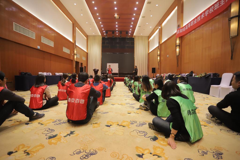 两天的培训内容丰富,形式多样,既有沙盘演练,又有体验式培训。第一天进行的是班主任工作沙盘演练。沙盘演练又叫沙盘模拟培训,通过引领学员进入一个模拟的环境,针对问题进行讨论推演,找出解决问题的方法,是一种实战性的实践培训方式。本次培训,培训老师将参加的班主任随机分成了7个小组,通过班主任工作中经常遇到的三个典型问题(A班班风不正,难以管理;B班纪律很差,任课老师意见大;C班“小团体”,总惹是生非。),分别展开讨论。有组内讨论合作,也有组间竞争。每个小组的班主任都积极思考,踊跃发言,充分表达了自己的想法、意见。这样的培训方式是一次经验的交流、思想的碰撞,有别于传统的讲授方式,更容易让班主任融入和参与其中,达到了较好的培训效果。