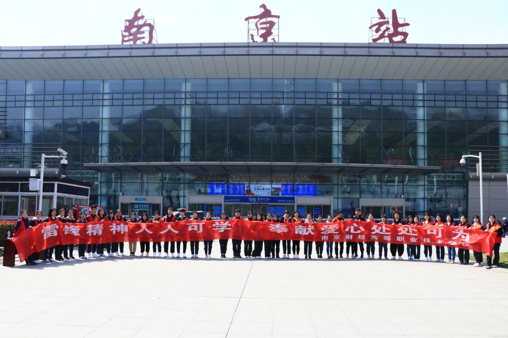 3月16日,我校的40多名学雷锋志愿者在校团委孙蓬飞书记和社团工作干事潘芸老师的带领下,来到了南京火车站北广场,开展了一次传承雷锋精神的志愿服务活动。