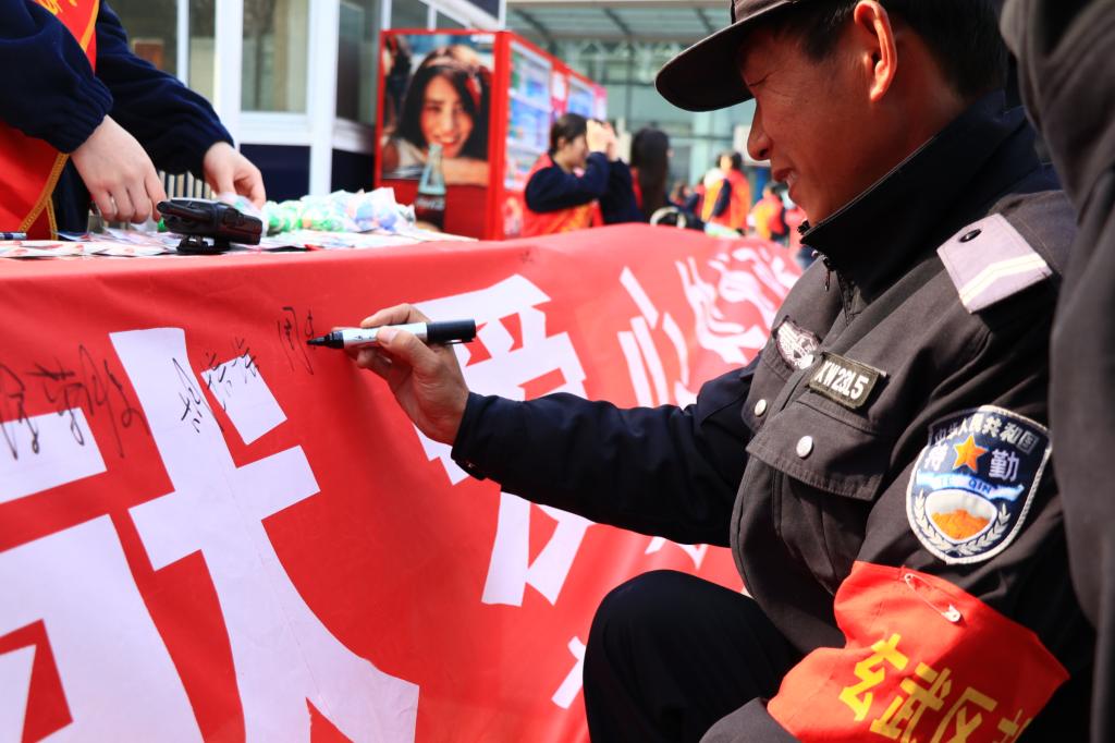 上午9时,志愿者们准时来到集合地点。大家有条不紊地搬桌子、拉横幅、穿马甲、戴绶带,摇身变成雷锋精神的“代言人”。按照事先的分工,大家迅速投入到了志愿服务活动中去。